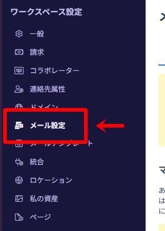 2.0のメール配信を有効にするには、まず左下の「ワークスペース設定」にある「メール設定」を完璧に埋める必要があります。 (ここを空欄にしたままだと、どんなに良いメールを書いてもシステムが送信を拒否してしまいますからね)