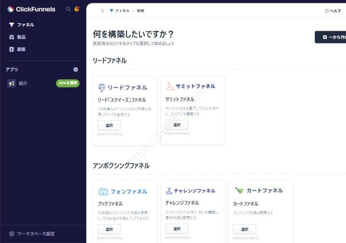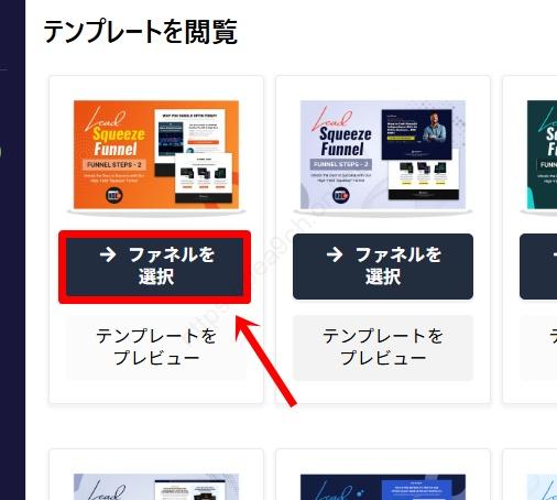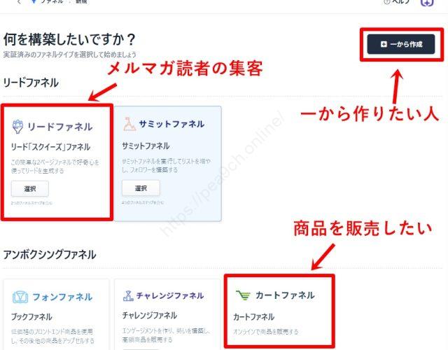 (まずは一番上の『リードファネル』を選んでみるのが無難ですよ。2枚のページがセットになった、最もシンプルで強力な集客装置の土台ができあがります)