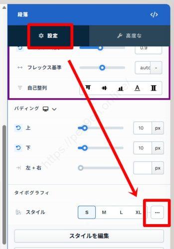エレメントの「設定」を開き、フォント(スタイルを編集)を選択します。