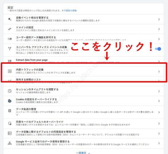 さらに「設定」セクションの 「すべて表示」 をクリックすると、ようやく 「内部トラフィックの定義」 という項目が出てきます。