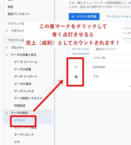 現在計測されているイベント(page_viewなど)が一覧で出てきますので、イベント名の左側にある「星マーク」をクリックして点灯させればOKです。