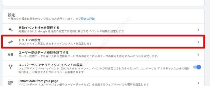 設定一覧の中にある 「ドメインの設定」 をクリック。