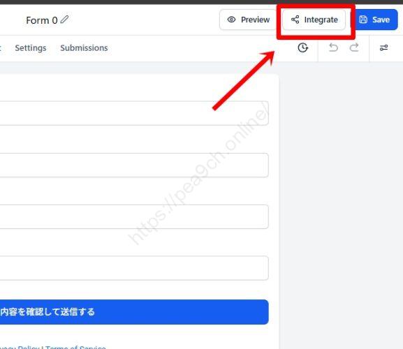 「Save」の隣にある「Integrate」ボタンを押します。