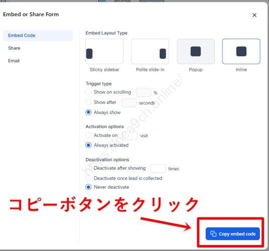 そして好みにカスタムをしたら「Copy Embed Code」を押してコピーします。