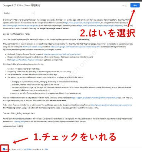 規約に同意した直後、画面に「Google タグ マネージャーをインストール」**というポップアップが出ているはずです。
