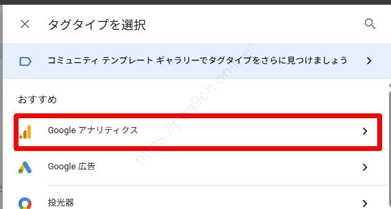 「Google タグ」を選択します。