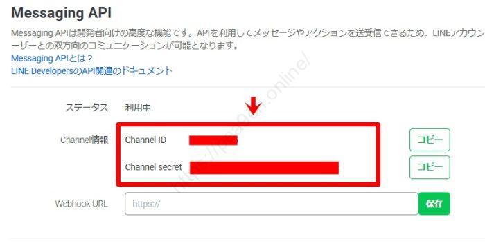 画面に表示された「Channel ID」と「Channel secret」をコピーして、メモ帳などに控えておきましょう。