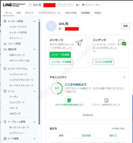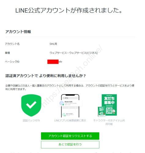完了画面が出たら「あとで認証を行う」などで閉じて、管理画面(LINE Official Account Manager)に入りましょう。