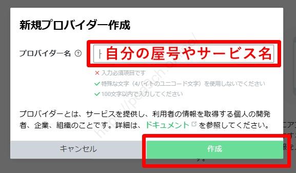 プロバイダー名には、あなたの屋号やサービス名を入力してください。