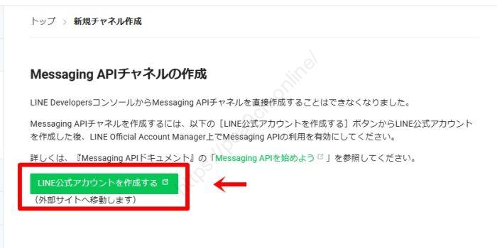 以前はここから直接チャネルを作れましたが、現在は「LINE公式アカウント」を先に作る流れになっています。
