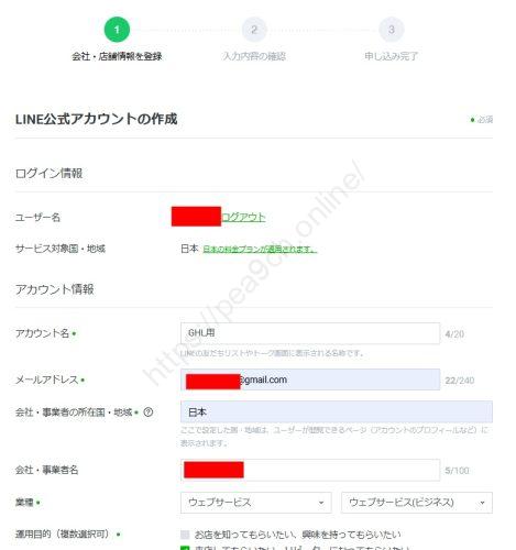 別タブで公式アカウントの作成画面が開きます。