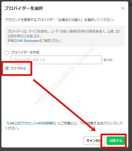ここで、手順1で作ったプロバイダー(例:カナタGHL)を必ず選択してください。規約に同意して進むと、連携が完了します。
