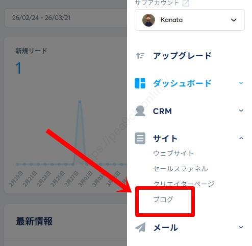 1.サイドバーの「ブログ」をクリックします。