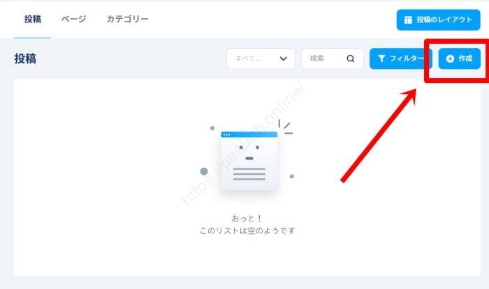 1.ブログ管理画面で「作成」をクリック。