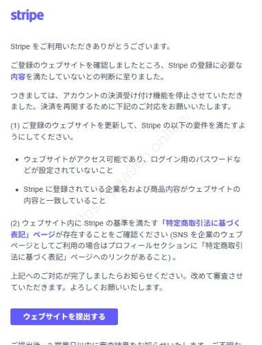 実際にStripeのアカウントを作成してみるとわかるのですが、アカウント作成後に基準を満たす「特定商取引法に基づく表記」や代表者を証明する書類の提出などを求められます。