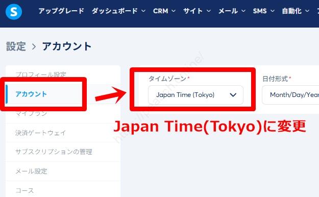 ・Timezoneを「Japan Time(Tokyo)」に必ず変更。